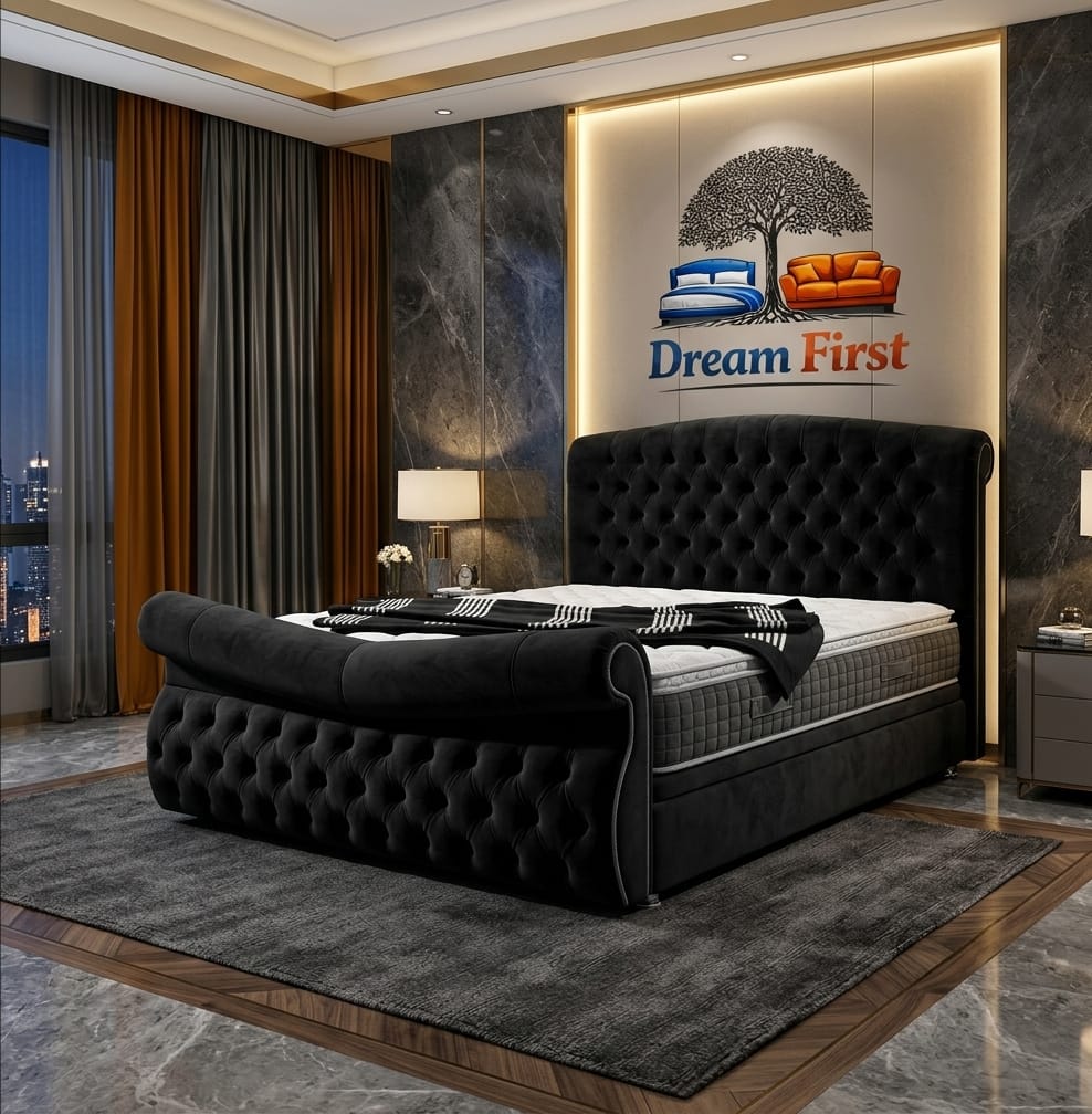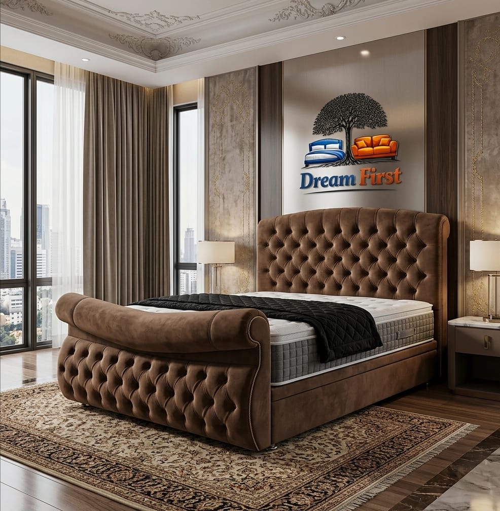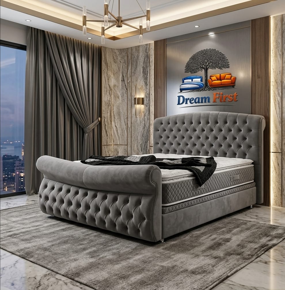 The Austen Buttoned Bed by DreamFirst is a refined interpretation of the classic winged bed design, blending timeless elegance with modern craftsmanship. Inspired by traditional British styling, this bed brings a sense of sophistication and structure to any bedroom.