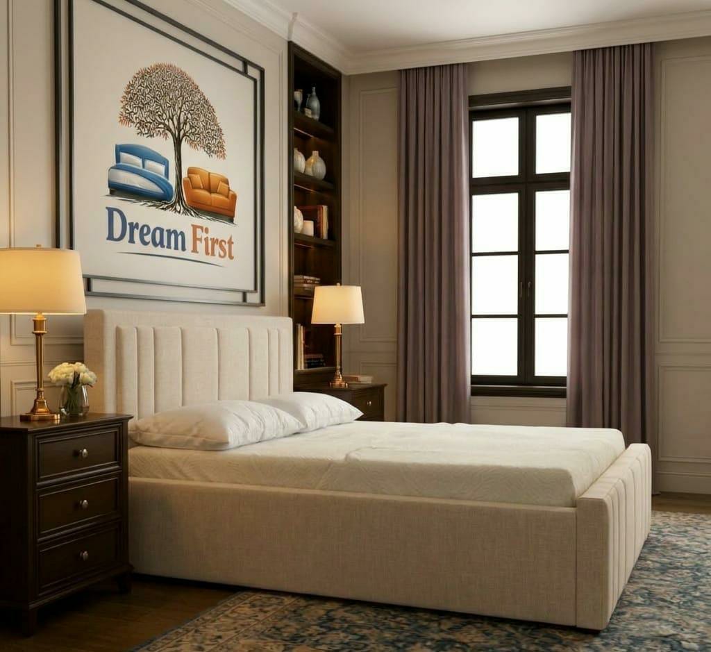 The SleepWell Bed by DreamFirst is designed to bring modern elegance, comfort, and versatility to your bedroom. Featuring a stylish vertically panelled upholstered headboard and matching footboard, this bed creates a clean, contemporary look that fits perfectly in both modern and classic interiors.