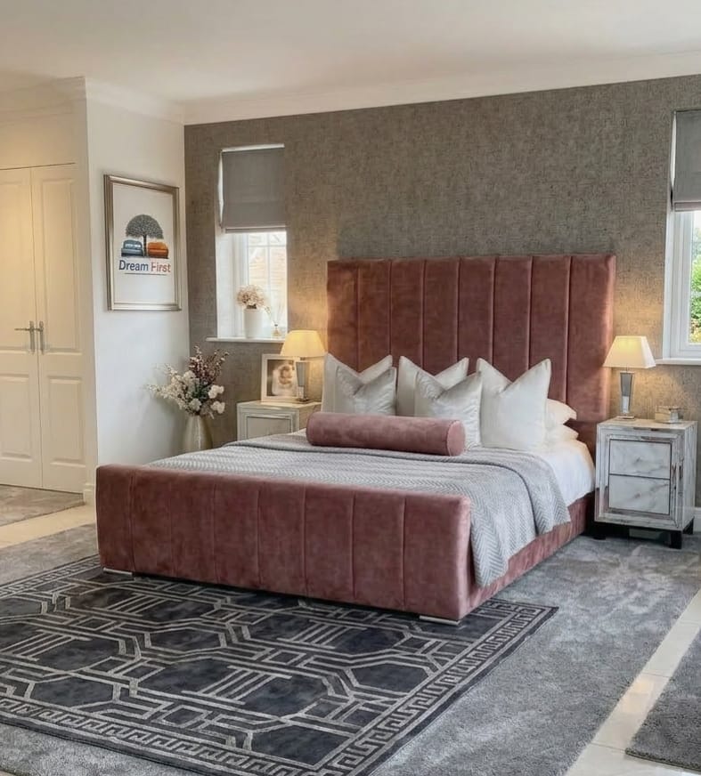 | Luxury Sofia High Headboard Bed Frame | Elegant Tall Panel Headboard Design | Hand-Finished Upholstery |